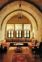Located above the town of Urgup, Esbelli Evi is the vision of Suha Ersoz, a confirmed bachelor and former lawyer. Fourteen years ago he paid US$10,000 for two 18th-century Ottoman houses that front an Urgup hillside. Together with the abandoned 5th- and 6th-century caves behind them, he transformed the property into a one-of-a kind hotel.