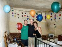 When in Cappadocia, I highly recommend the ESBELLI EV hotel in Urgup. It should be online if you google the name. Fabulous place, the owner Suha is a wonderful man, he gets really interesting guests, diplomats, writers, National Geographic photographers. The view is superb from his breakfast balcony, the authentic "cave" rooms unsurpassed. An open kitchen, they'll cook for you, or you can just poke around yourself, with wines, snacks, chilled glasses for beer, really classy. It's about $100 a night for a double room, but well worth the slight premium vs. other nice places. True class.